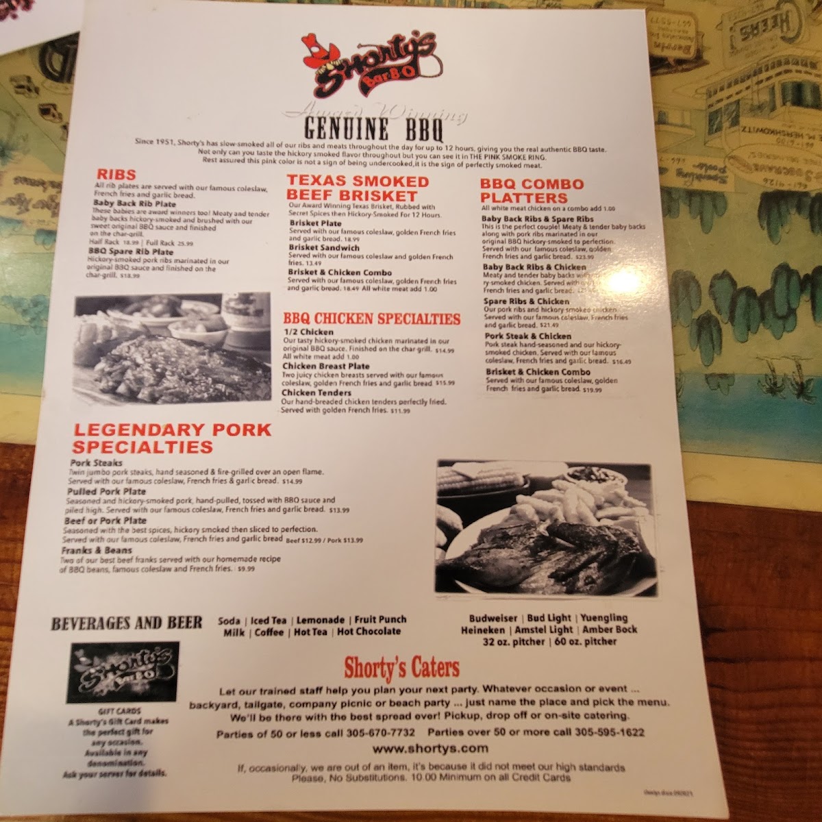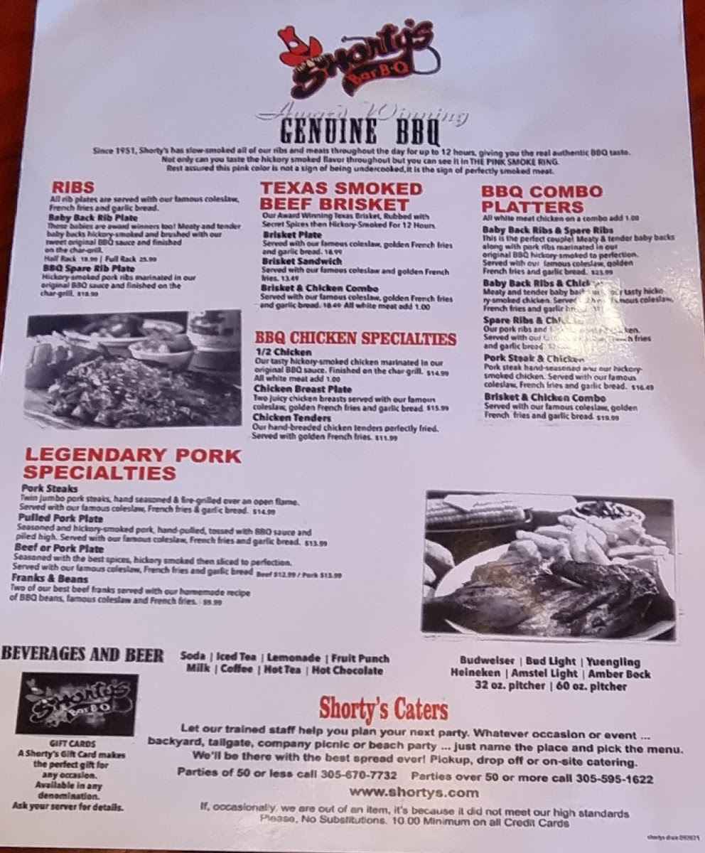 Welcome to Shorty’s BBQ - Dadeland - South Dixie, where mouthwatering BBQ meets a warm, inviting atmosphere. Nestled on South Dixie Highway in Miami, this gem specializes in tender, fire-grilled meats that will leave you craving more. The menu boasts standout dishes such as the BBQ Skirt Steak, a juicy 12 oz. cut seasoned to perfection, and served alongside their famous coleslaw, French fries, and garlic bread for just $25.99.